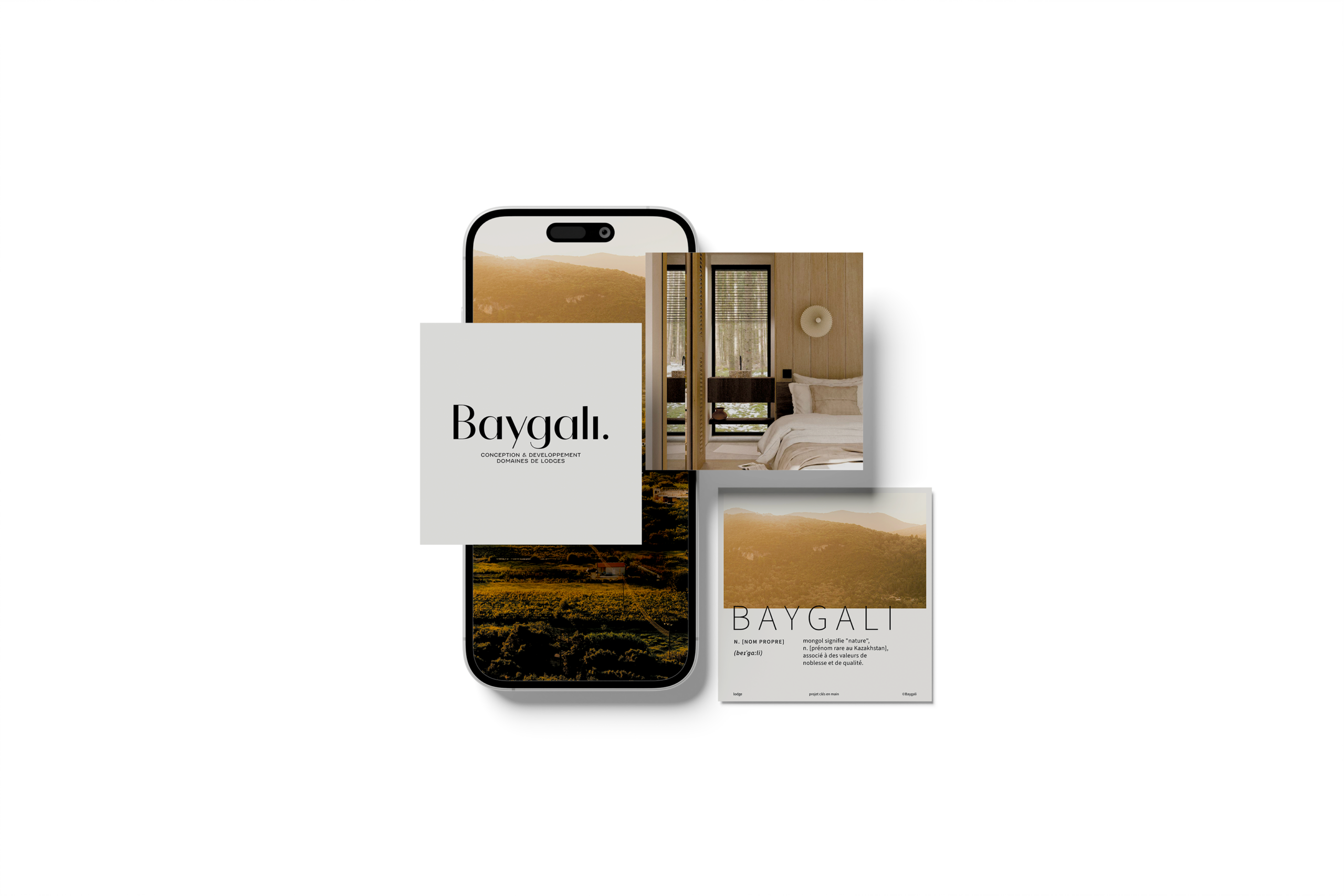 Baygali conçoit et développe des domaines de lodges immergés en pleine nature, alliant confort, authenticité et éco-responsabilité. Baygali s’est entouré du Studio BACK pour l’accompagner dans la refonte de son logotype et lui créer une charte graphique, avec pour ambition de construire une marque plus forte et impactante, à la hauteur d’une offre singulière et d’un positionnement premium sur son marché.
